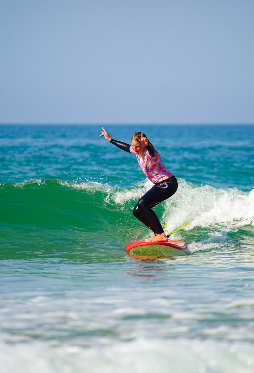 Vous avez déjà pris quelques cours, vous savez vous lever sur la planche dans la mousse… et vous sentez que vous avez envie d’aller un peu plus loin ? C’est exactement le bon moment pour rejoindre nos cours intermédiaires et perfectionnement.